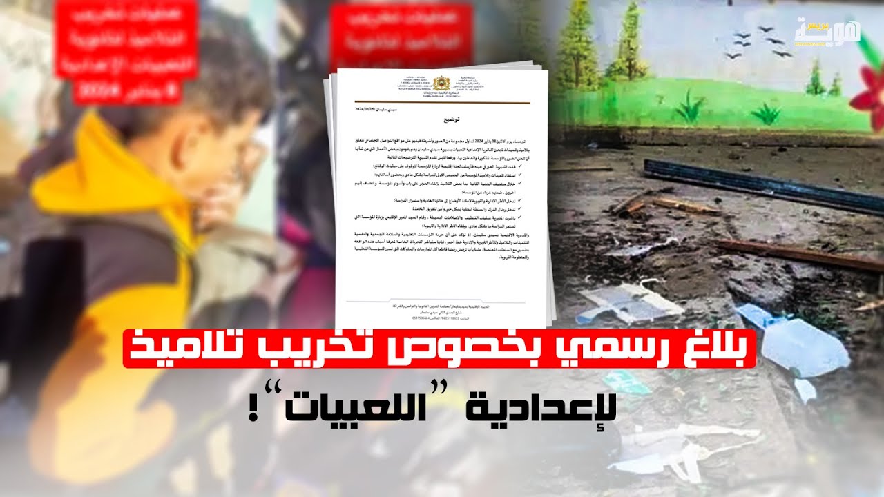 فيديو.. بلاغ رسمي يكشف تفاصيل تخريب تلاميذ لإعدادية بسيدي سليمان
