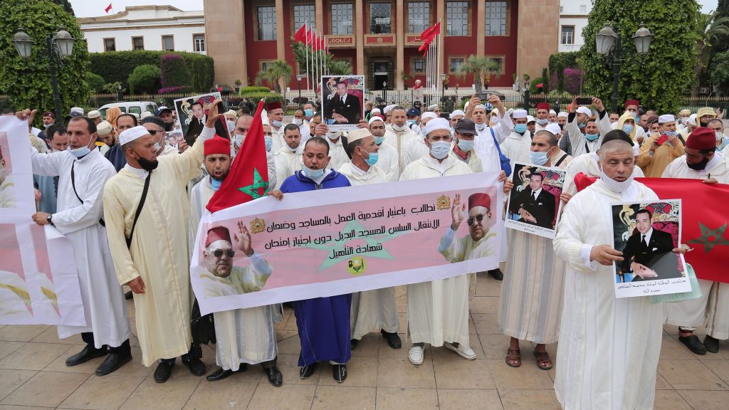 فيديو.. تحت شعار “نحن نواب أمير المومنين ولسنا نواب التوفيق” القيمون الدينيون يحتجون ويرفعون هذه المطالب