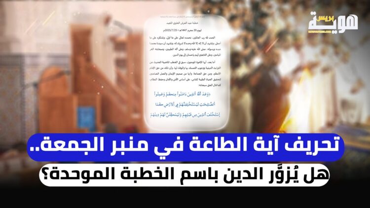 فيديو.. تحريف آية الطاعة في منبر الجمعة.. هل يُزوَّر الدين باسم الخطبة الموحدة؟ (هوية بريس) 26 يوليو 2025 23:20