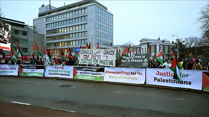 لاهاي.. متظاهرون يتابعون محاكمة إسرائيل يطالبون بوقف “الإبادة”