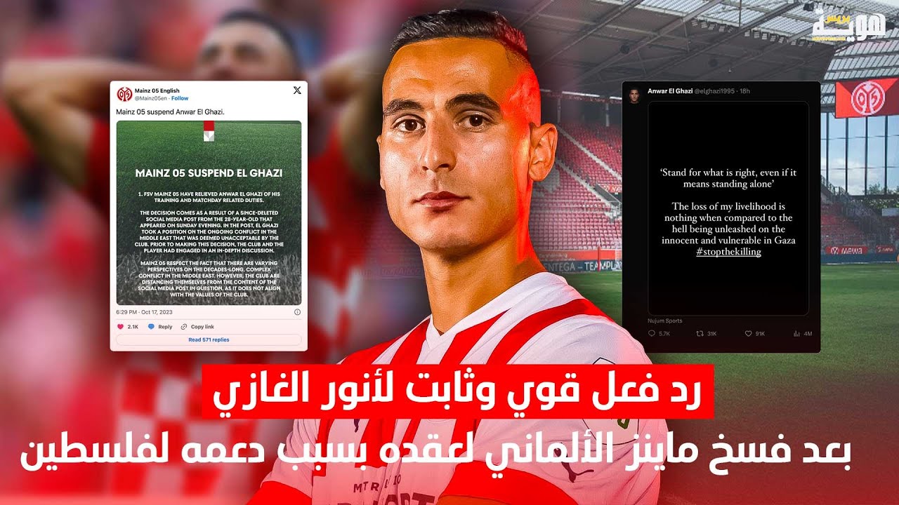 فيديو.. رد فعل قوي وثابت لأنور الغازي بعد فسخ فريق ماينز الألماني لعقده بسبب دعمه لفلسطين (هوية بريس) 04 نوفمبر 2023 16:16
