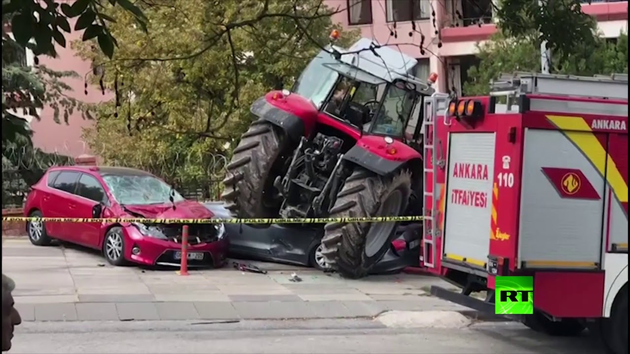 فيديو.. سائق جرار يحاول اقتحام سفارة الكيان الصهيوني في تركيا