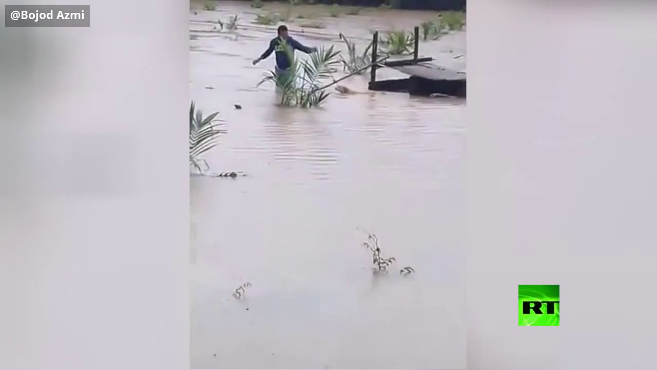 فيديو.. شاهد شابا ينقذ كلبا من الغرق بفيضانات ماليزيا