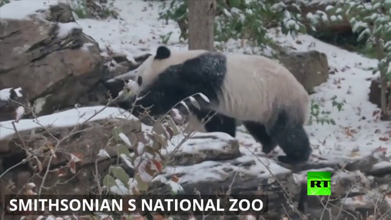 فيديو.. شاهد كيف تحتفل باندا بأول سقوط الثلج