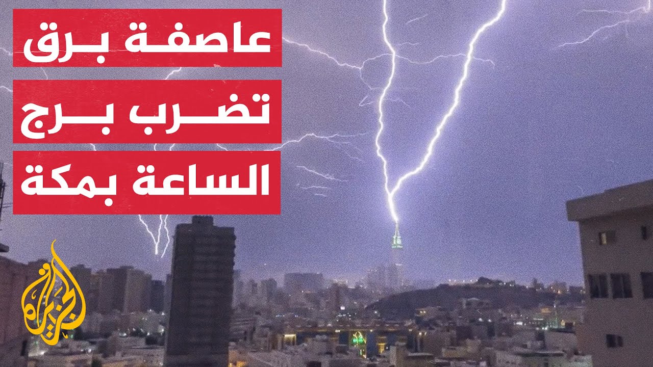فيديو.. شاهد لحظة ضرب صاعقة برق لبرج الساعة في مكة