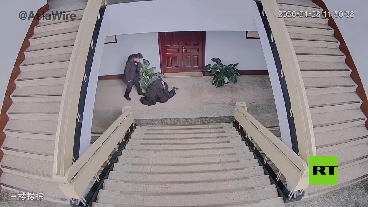 فيديو.. شرطي صيني يسقط منهارا بعد مناوبة طويلة في مدينة ووهان