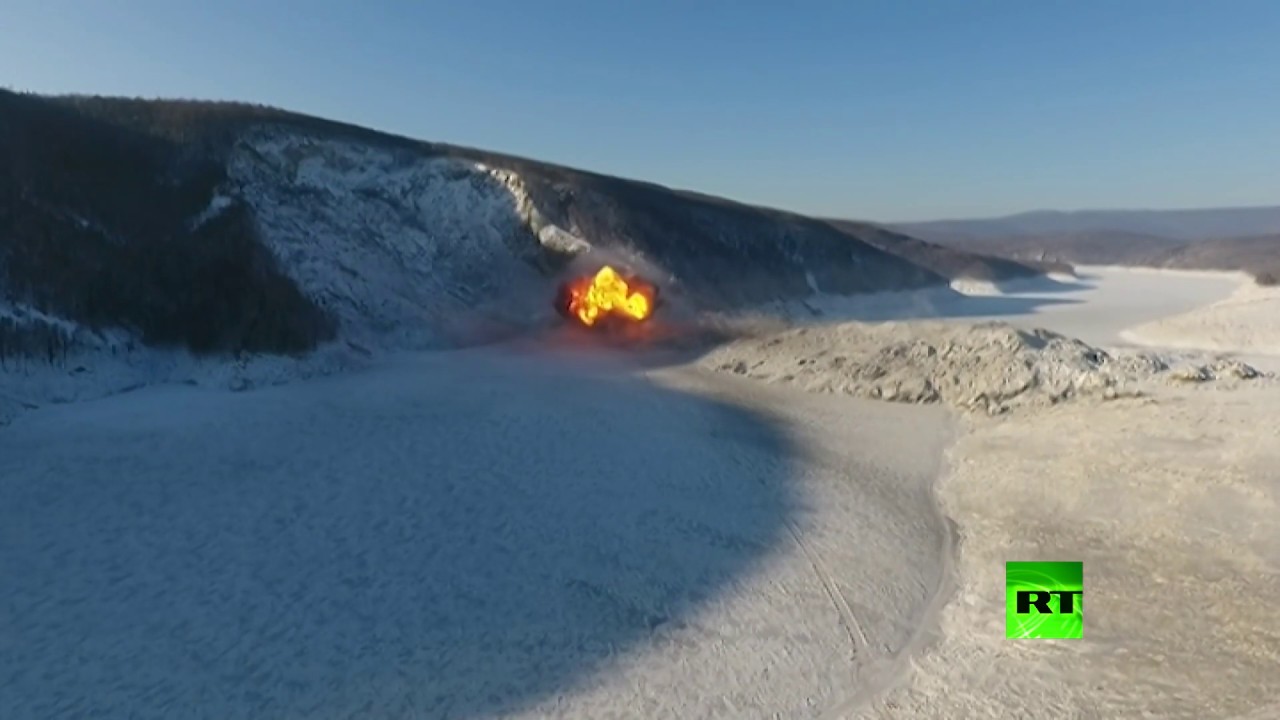 فيديو.. عملية تفجير لمجرى نهر “بوريا” في درجة حرارة -30
