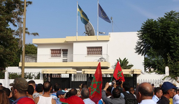آلاف المغاربة يحتجون أمام سفارة السويد في الرباط مستنكرين المس بوحدتهم الترابية