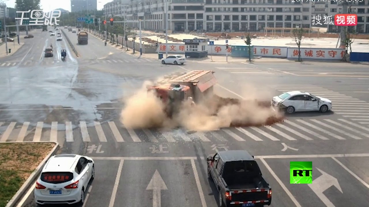 فيديو.. فيديو يحبس الأنفاس لحادث مروري في الصين