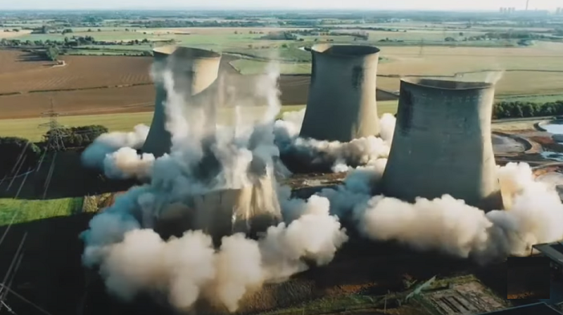 شاهد.. تفجير 4 أبراج تبريد ضخمة لمحطة كهرباء