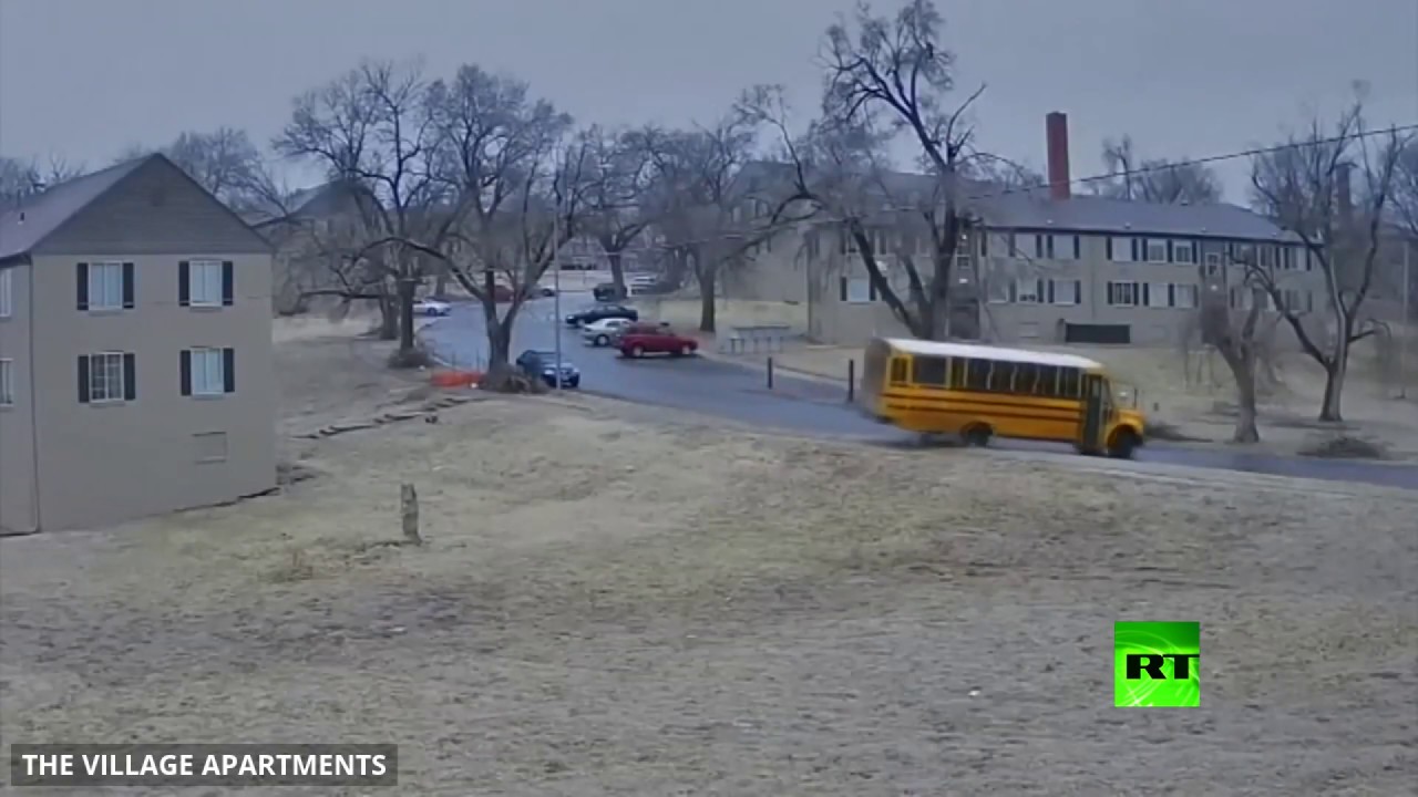 فيديو.. لحظة انقلاب حافلة مدرسية على طريق جليدي في الولايات المتحدة