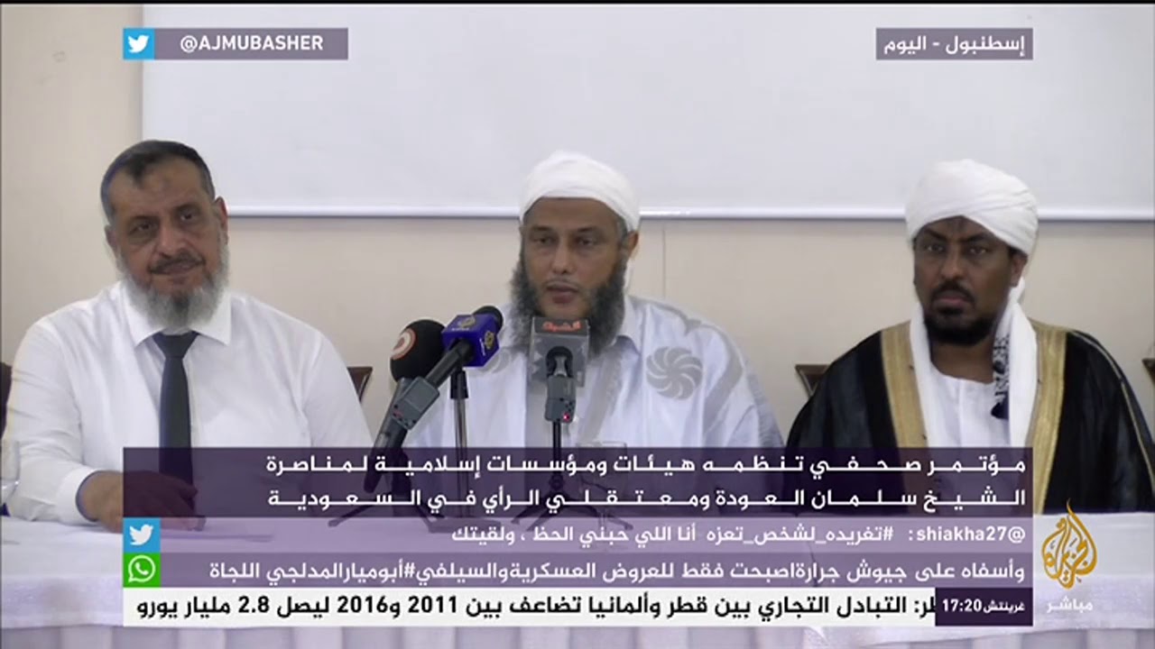 فيديو.. مؤتمر صحفي لهيئات ومؤسسات إسلامية لمناصرة الشيخ سلمان العودة وإخوانه عبد الله المصمودي 09 سبتمبر 2018 00:18 المشاهدات: 1٬314