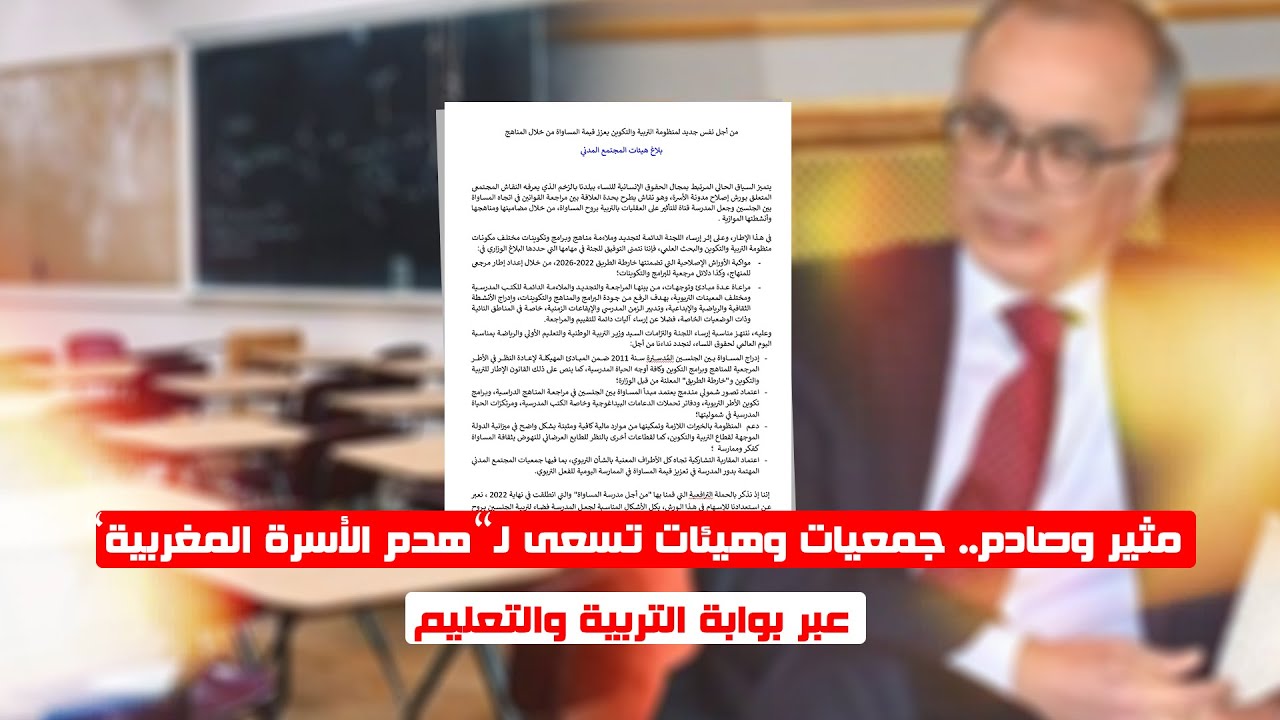فيديو.. مثير وصادم.. جمعيات وهيئات تسعى لـ”هدم الأسرة المغربية” عبر بوابة التربية والتعليم (هوية بريس) 02 أبريل 2024 13:48