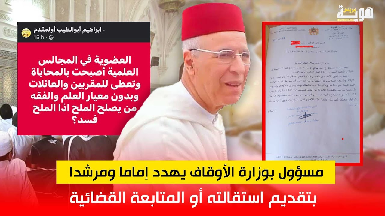 فيديو.. مسؤول بوزارة الأوقاف يهدد إماما ومرشدا بتقديم استقالته أو المتابعة القضائية!! (هوية بريس) 16 نوفمبر 2023 15:33