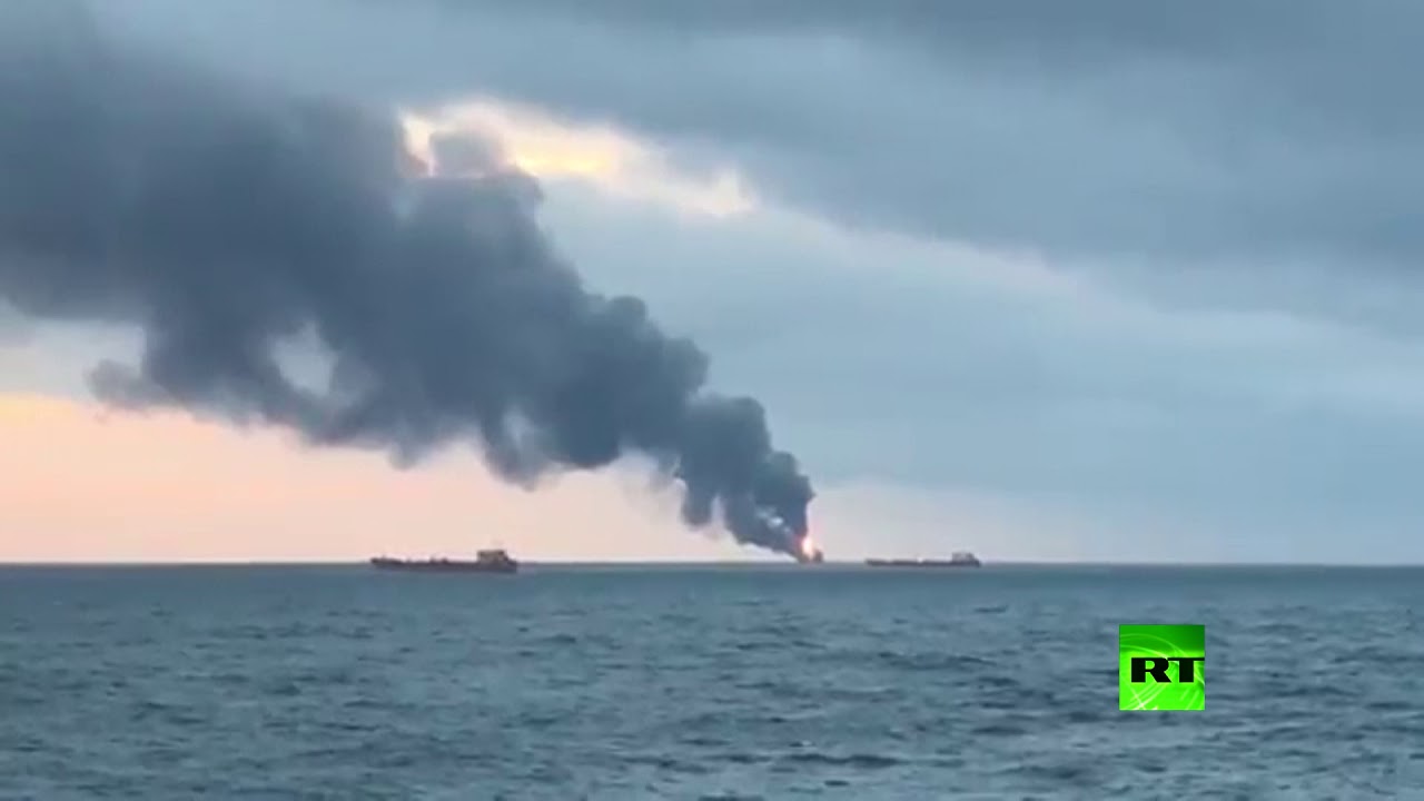 فيديو.. موسكو: مقتل 10 بحارة في حريق على متن سفينتين في مضيق كيرتش