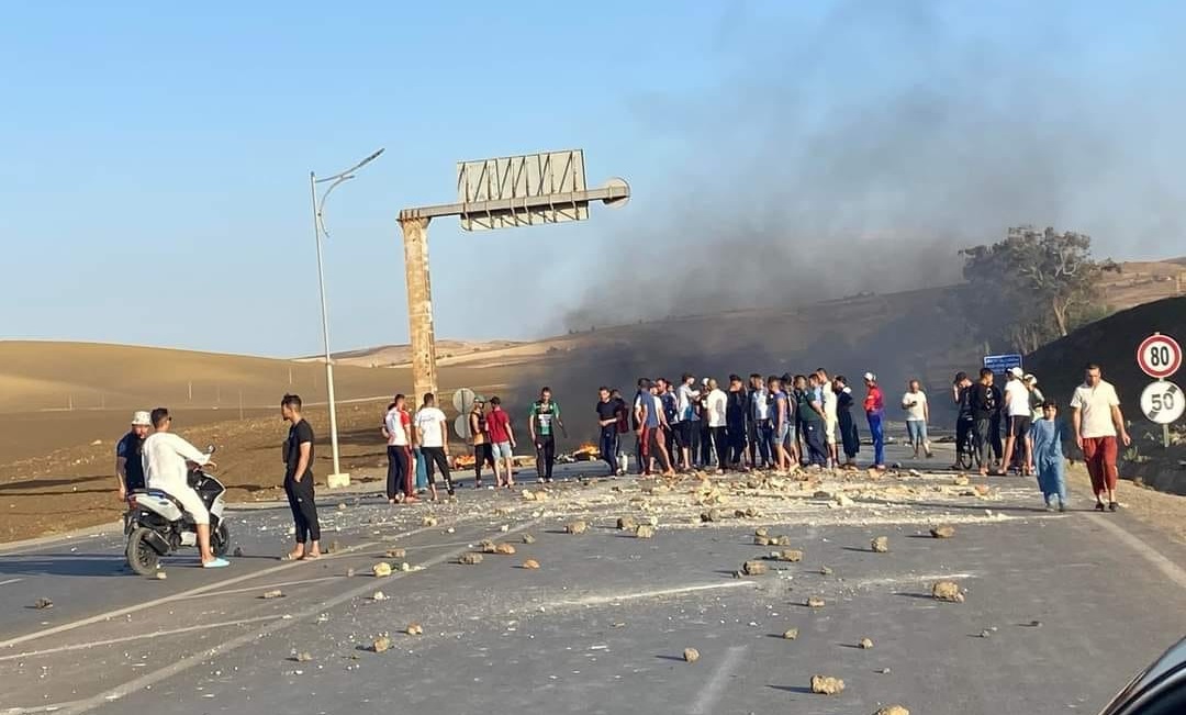 وأشارت المصادر خاصة إلى الطريق الوطني رقم 14 بين فرندة ووسط مدينة تيارت، كما أظهرت الصور وضع أحجار ومتاريس لمنع مرور السيارات.