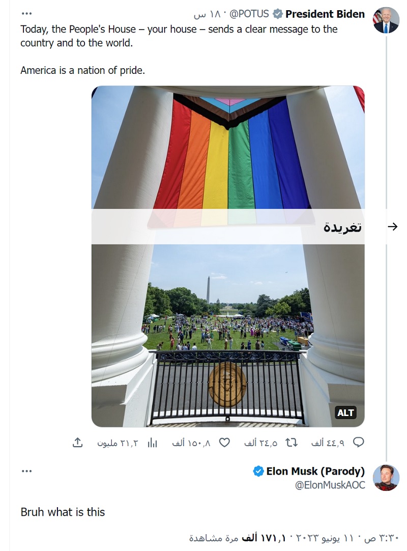 في ظل هذا “الوضع الغريب وغير المسبوق منذ قوم لوط” وفق عدد من النشطاء والمتابعين، خرج الرئيس الأمريكي جو بايدن بتدوينة على حسابه على تويتر ليعلن من خلالها أمام العالم أجمع بأن الولايات المتحدة الأمريكية أصبحت “أمة مثلية” (شاذة جنسيا).
