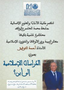 وتستضيف جامعة محمد الخامس د. التوفيق ليحاضر في موضوع “الدراسات الإسلامية.. إلى أين؟”، على الساعة الحادية عشرة صباحا، بمدرج ابن خلدون، المتواجد بكلية الآداب والعلوم الإنسانية.