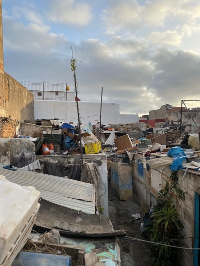 مجموعة الأسر التي تكون ساكنة من أكثر من أربعين فردا تعاني من أوضاع معيشية مزرية داخل الفضاء الخرب المبنية دوره الضيقة من خشب وشرائح قصدير، في وقت هدمت فيه كل دور الصفيح بالمدينة بعد الأمر الملكي.