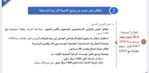 + برنامج تأهيل مؤسسات الرعاية الصحية الأولية: يهدف البرنامج إلى استكمال المرحلة الأولى عبر تأهيل 1,400 مركز صحي، ومع إطلاق المرحلة الثانية لإعادة تأهيل 1,600 مركز صحي على مدى ثلاث سنوات، لتعزيز البنى المحلية وتوسيع التغطية الصحية الأساسية.