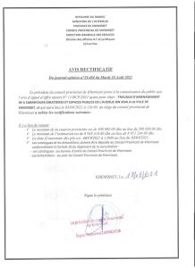 وأوضح أنه تم تعديل الصفقة المرة الأولى، حيث تم تغيير مبلغ الضمان بتاريخ 23 غشت 2021، معتبرا أن هذا التعديل “غير قانوني لأنه لم يحترم أجل 21 يوم الذي يفرضه القانون بخصوص أي تعديل والذي يجب أن يسبق تاريخ فتح الأظرفة”.
