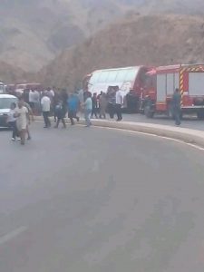 و أوردت المصادر نفسها، أن السائق و مساعده مازال محاصرين بفعل قوة الاصطدام مع منحدر صخري، و تم تجنيد جرافة لإزاحة الحافلة و انقاذهما.