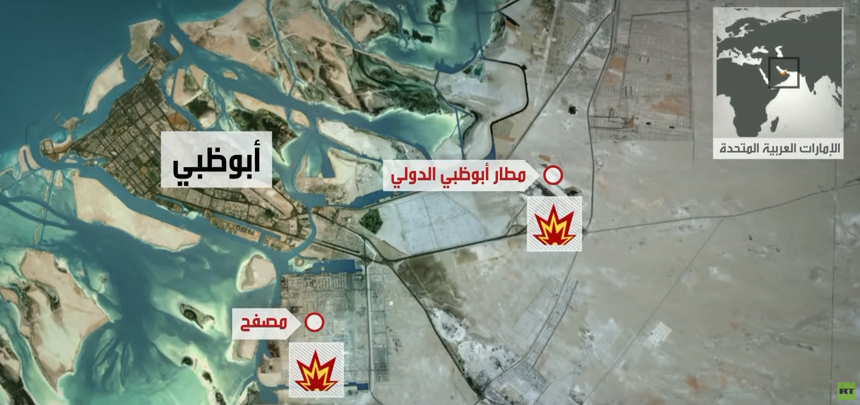 وكانت شرطة أبوظبي أعلنت في وقت سابق اليوم انفجار ثلاثة صهاريج نقل محروقات بترولية في منطقة “مصفح آيكاد” بالقرب من خزانات شركة أبو ظبي الوطنية للبترول “أدنوك “، واندلاع حريق آخر في منطقة الإنشاءات الجديدة في مطار أبوظبي الدولي.