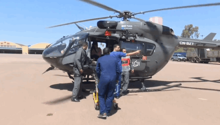 حلت طائرة هليكوبتر طبية عسكرية، بمدينة وجدة لنقل الشاب “أمين بوسعادة” المصاب على مستوى رجليه إلى الرباط لتلقي العناية الطبية اللازمة.