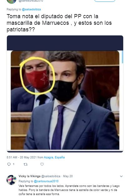 وقال الموقع إن العلم المغربي رغم ذلك يختلف عن الكمامة التي ارتدها النائب الإسباني، إلا أن لونها والنجمة دفعت أنصار الحزب إلى مهاجمته.