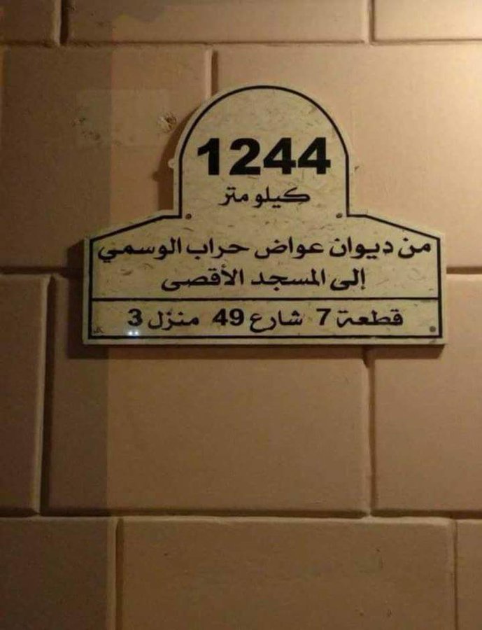 وأظهرت إحدى الصور عنوان منزل المواطن الكويتي، عوض الوسمي، الذي أكد فيه على أن ديوانه يبعد عن المسجد الأقصى مسافة 1244 كيلومترا.