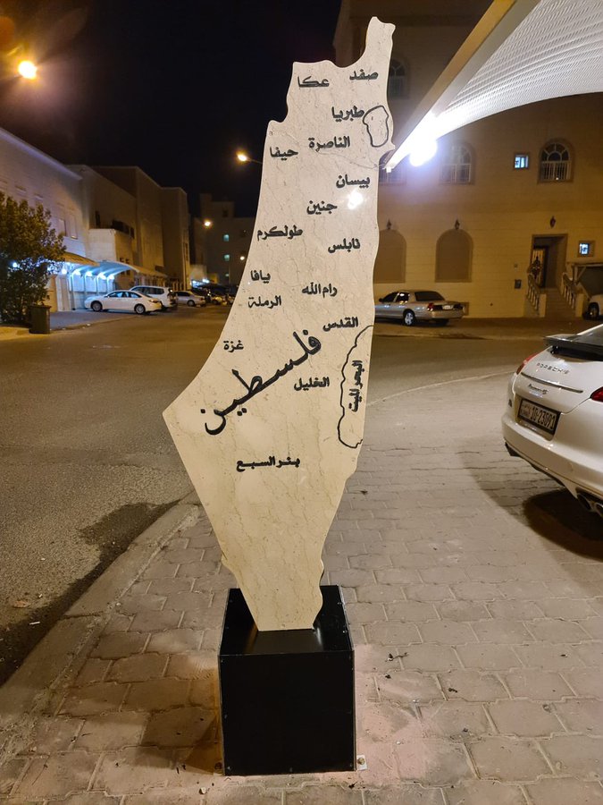 وسبق لهذا المواطن الكويتي أن وضع أمام منزله خريطة فلسطين التاريخية، موضحا عليها كل المدن المحتلة، بحسب ما تداوله رواد مواقع التواصل الاجتماعي.