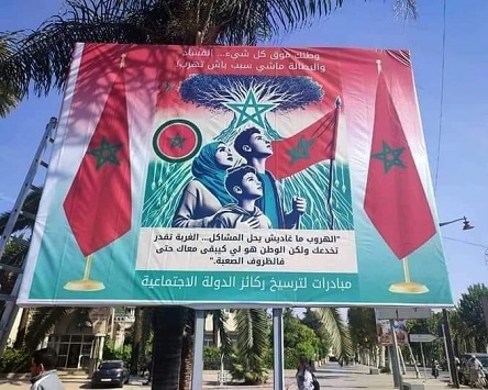 وأضافت الجمعية في اللافتة المكتوبة بالدارجة “الهروب ما غاديش يحل المشاكل.. الغربة تقدر تخدعك ولكن الوطن هو لي كيبقى معاك حتى فالظروف الصعبة“.