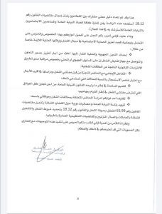 وجاء في المذكرة، تقرير إحداث اللجن المشتركة جهوية ومحليا بين النيابة العامة ووزارة الشغل، لتعزيز التعاون ودعم مفتش الشغل بالجهاز القضائي، لضبط المخالفات القانونية المتعلقة بالأجراء.