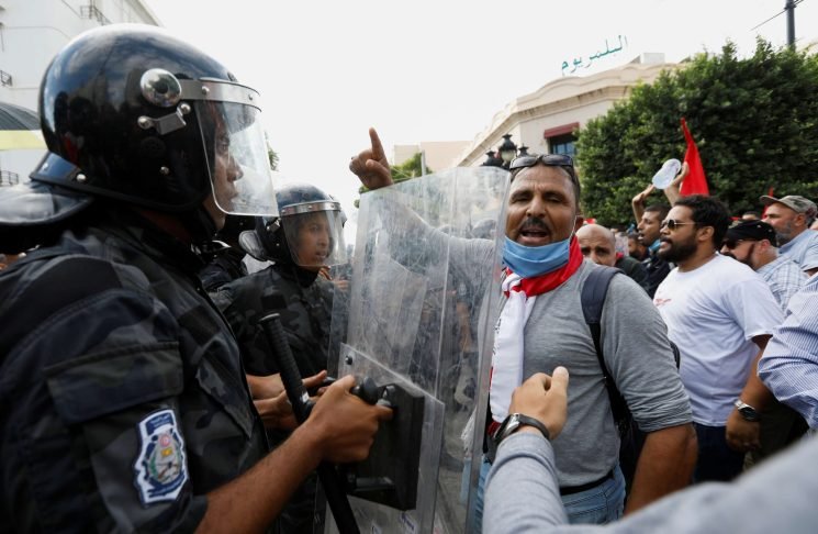 مئات التونسيين يتظاهرون في العاصمة ضد القرارات “الانقلابية” لقيس سعيّد (فيديوهات وصور)