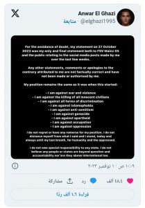 ماينز يفسخ عقده مع أنور الغازي بسبب منشوراته المؤيدة لفلسطين والأخير يرد برسالة قوية (تدوينة)