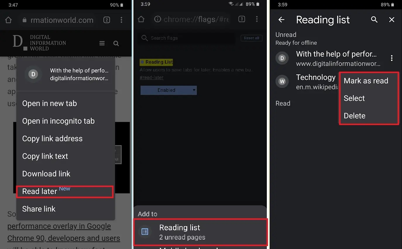 الجدير بالذكر أنه لتجربة ميزة (القراءة لاحقًا) في متصفح جوجل كروم في هاتفك، يجب عليك تثبيت أحدث إصدار من (Chrome Canary)، حيث ستجد الميزة مفعلة افتراضيا، ولا توجد إعدادات إضافية تحتاج إلى تفعيلها.