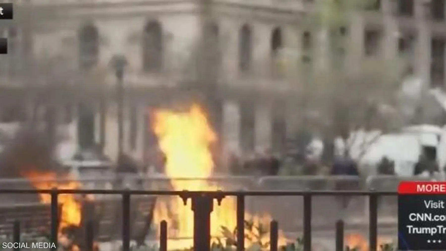 مثير. أمريكي يشعل النار في نفسه أمام محاكمة ترامب (فيديو)