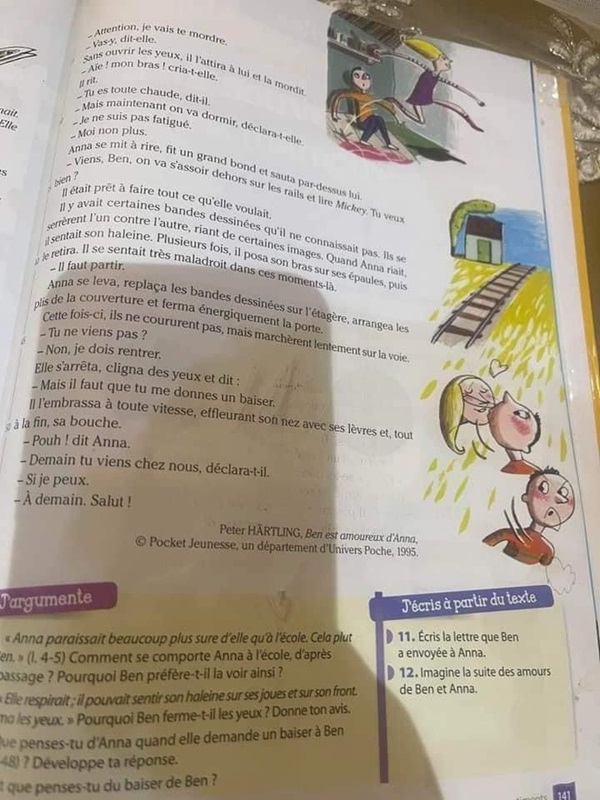 وكتب الدكتور المغربي “مصيبة آخرى في آحد مقررات الفرنسية بالتعليم الخصوصي للسنة الرابعة ابتدائي.. نص بعنوان: “أول قُبْلَة”