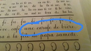 خلال مراجعته مع ابنته الصغيرة؛ تفاجأ أحد أولياء الأمور أمس بمدينة الدار البيضاء من سؤالها عن معنى عبارة: Carafe de bière.