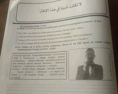 من جهته علق الكوميدي المثير للجدل يسار لمغاري على ذلك بالقول: “لي عظيم الشرف أنهم يحطو سيرتي الذاتية فالإمتحان الجهوي للقسم السادي ابتدائي”.