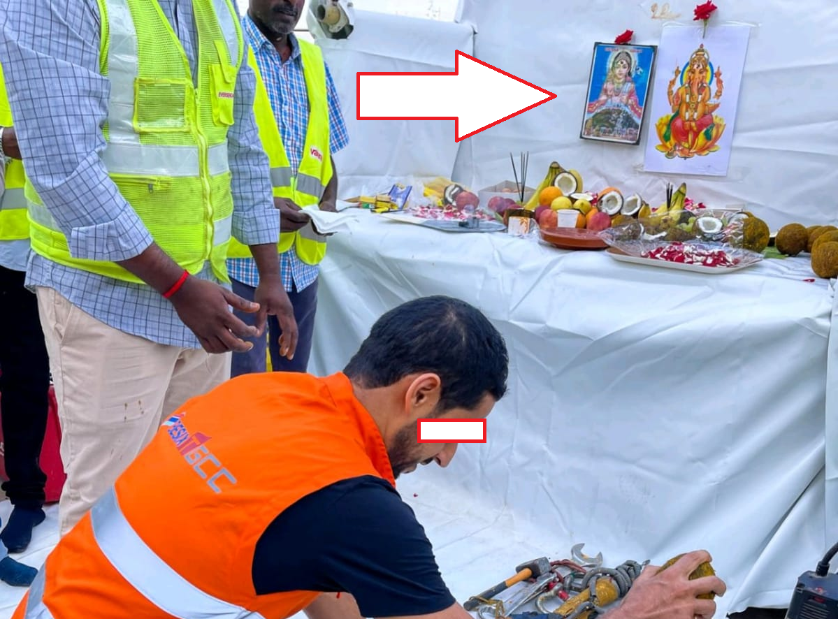 وتم الاحتفال خلال حفل “هندو تقليدي” بتعليق صور “غانيشا”، إله الهندوس، ومباركة الإنجاز بماء جوز الهند والتوابل قبل أن يتم يرفعها في الهواء.