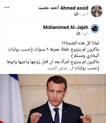 عصيد الذي يحاول الدفاع عن ماكرون، بيديه ورجليه، ادعى قبل أيام بأن الرسوم المسيئة للرسولﷺ جاءت بسبب أحاديث البخاري! و”أنه لا يوجد من يحتقر الديانات المختلفة أكثر من المسلمين”!