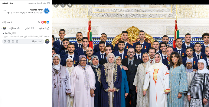 لكن أن تقدِم على هذا الفعل وكالة رسمية تمول من المال العام، وتتجرأ، مع كل الإمكانيات المادية واللوجيستيكية المتوفرة لها، على بتر صورة تذكارية لها رمزيتها الخاصة مع عاهل البلاد، التقطت لأمهات لاعبي المنتخب، بعد إنجاز رياضي كبير، فهذه جرأة ما بعدها جرأة، يضيف ذات المحلل”.