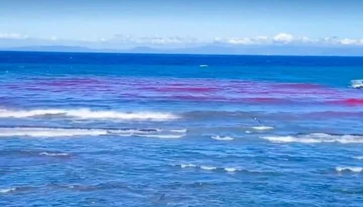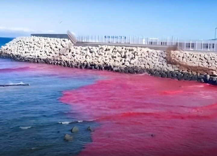 أثار تغيّر لون مياه البحر الأزرق الصافي إلى اللون الأحمر، بشاطئ مرقالة بالقرب من ميناء طنجة المدينة، قبل قليل، استغرابا ودهشة كبيرة بين ساكنة المنطقة ورواد كورنيش مرقالة.