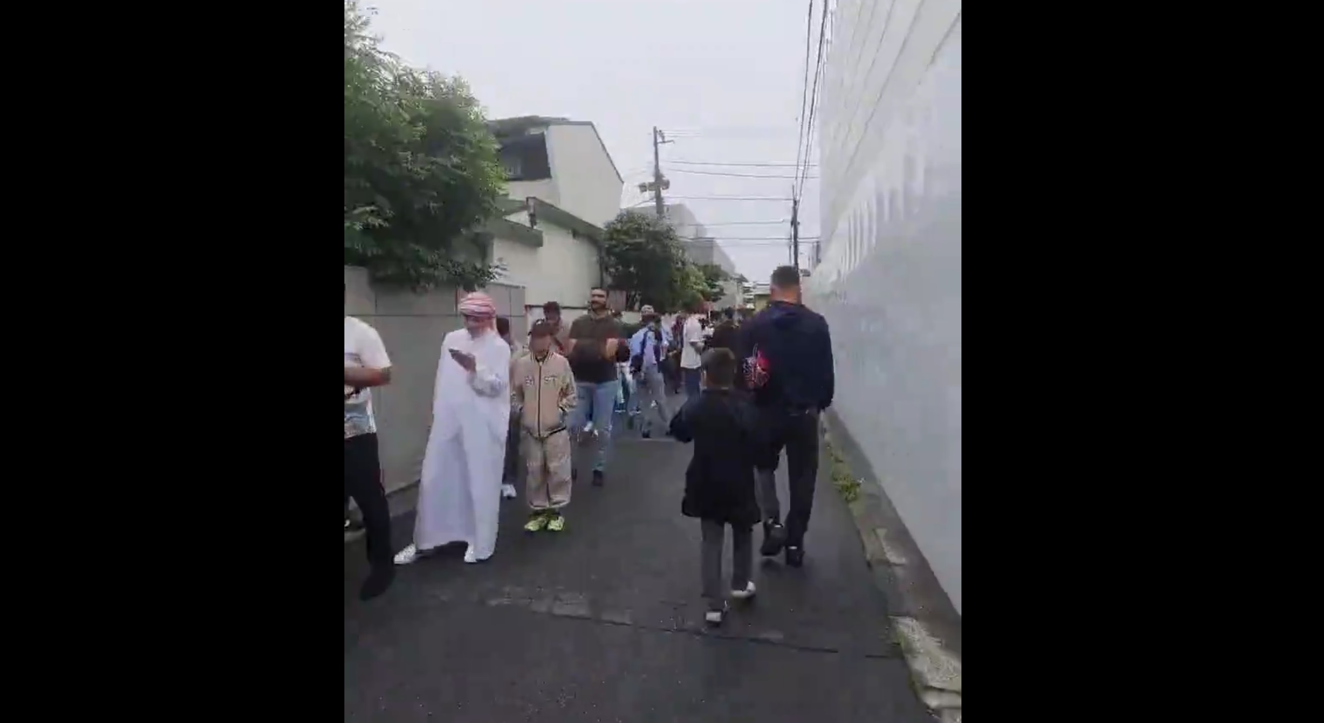 تداول عدد كبير من النشطاء على منصة “إكس” – تويتر سابقا – مقطع فيديو لطابور كبير لمسلمين في العاصمة اليابانية طوكيو، وهم ينتظرون دورهم لأداء صلاة عيد الأضحى في الجامع التركي بالمدينة، أمس الأحد.
