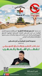 “مجموعة العمل” تنظم محاضرة بعنوان “الاختراق الصهيوني لقطاع الفلاحة بالمغرب” (فيديو)