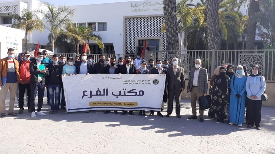 قام مجموعة من الطلبة يوم أمس الجمعة بتنظيم وقفة احتجاحية أمام المحكمة الابتدائية بمدينة أكادير تضامنا مع الطلبة الثلاثة المنتمين لجماعة العدل والإحسان، المعتصمين لليوم 67 ضد “طردهم التعسفي” من الكلية، وشجبا لمحاكمتهم في ملف وصفوه بـ”المفبرك ضد نشاطهم النقابي والطلابي”.