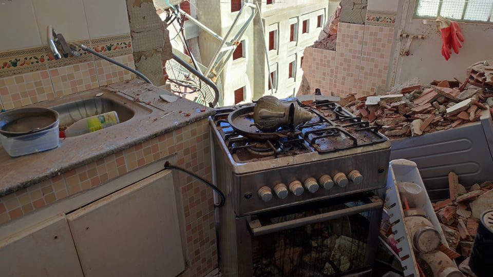 وأوضحت نفس المصادر، أن سقوط الرافعة أدى إلى هدم حائط مطبخ إحدى الشقق بإقامة الوفاء بالقرب من ملعب ابن بطوطة (طريق الرباط)، وإلحاق أضرار كبيرة بالشقة من الداخل.