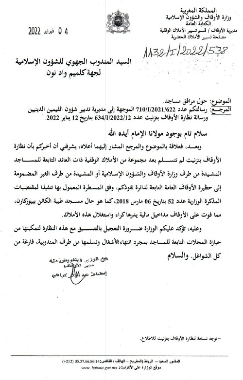 مراسلات بتضرر الأوقاف.. ساكنة جهة كلميم واد نون تشتكي المندوب الجهوي لوزير الأوقاف (وثائق)