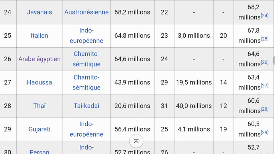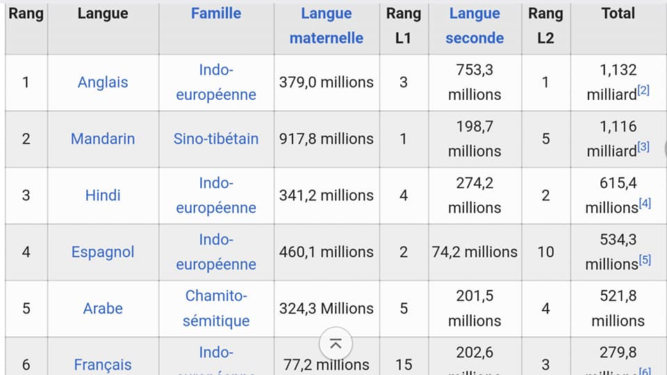 تجدر الإشارة إلى أن العربية حلت في تصنيف الموقع المذكور قبل الفرنسية، وفاق عدد الناطقين بها ضعف من ينطق بالفرنسية.